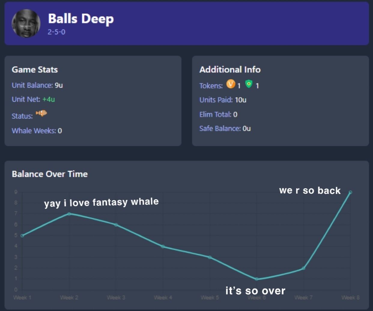 I want to be clear that I am not quitting/walking away. I still believe in the long-term vision of what fantasy whales aims to be: A fun, all-in-one way to make side bets your fantasy league. The current version is just not it.