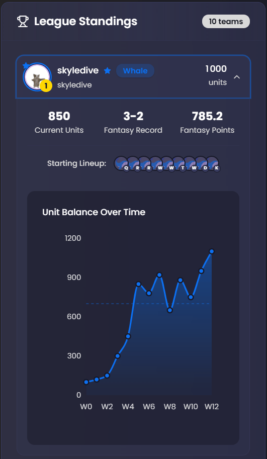 Thank you so much for your interest in fantasy whales and for giving me a shot. It makes me really happy to see almost 100 complete strangers bought-in to the idea of betting on your fantasy team. I’m going to get it right eventually, you’re just going to have to bear with me…
